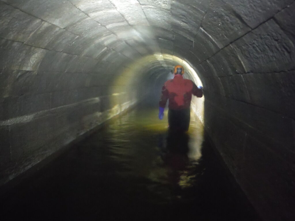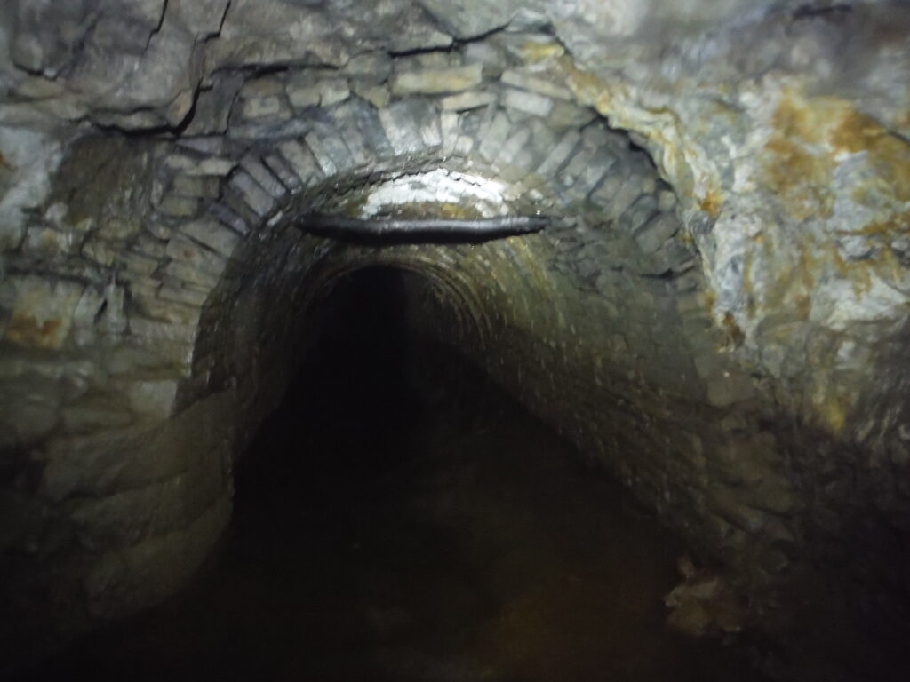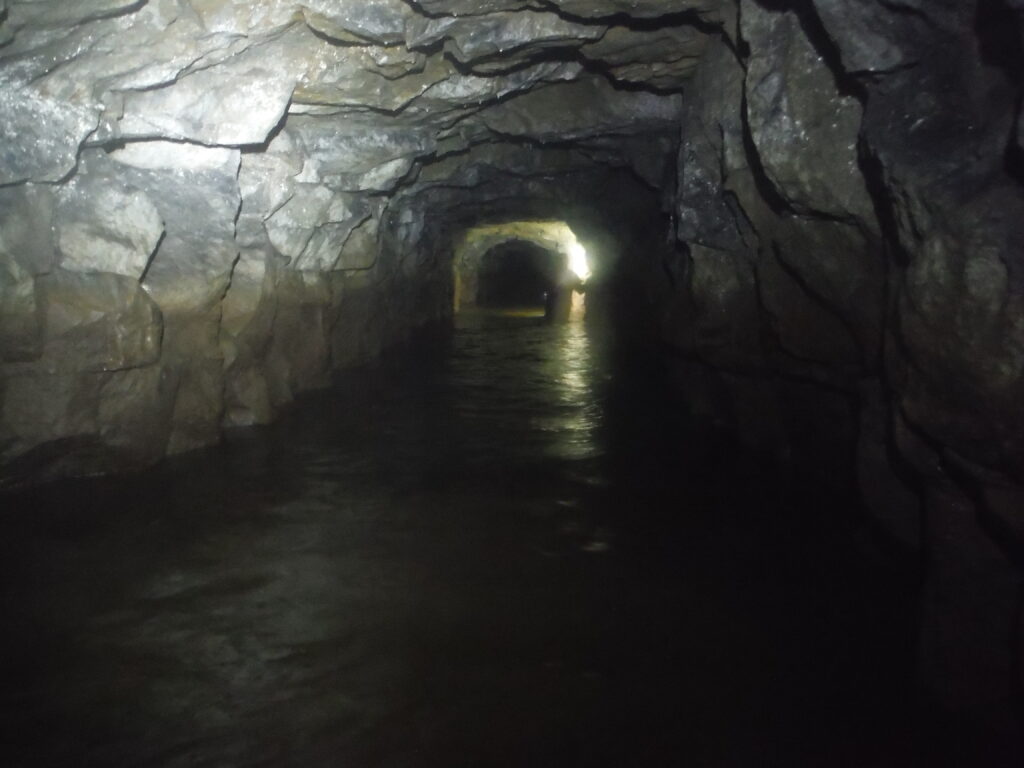 Dukes Level was a drainage adit driven from Hebden Gill and was approximately 1.5 miles in length. The level provided drainage for most of the deeper workings across Grassington Moor, reaching both Yarnbury and the Out Moor. Work started in 1796 and it was first designed as an underground boat level where ore and waste material could be transported out of the connecting mines, as well as to provide the vital function of drainage. Initially the level was constructed five feet wide by nine feet high, however in 1818, the new mining agent John Taylor instructed that the dimensions of the level were to be reduced down to four feet by six feet and six inches above the rails. Taylor’s reasoning for doing this was due to the cost of driving the level and the fact that once the ore was extracted by the boats it would need to be hauled back up to the mines to be dressed and smelted. As there was no room for a dressing floor and smelt mill at the levels portal from 1818, work was continued only to provide a drainage adit for the mines across the moor. Dukes Level took 20 years to reach the mines at Yarnbury and only reached Coalgrovebeck Engine Shaft on the Out Moor by 1830.