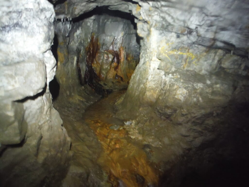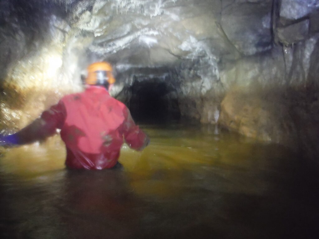 The first 10 metres of passage consists of a well line arch, however at the end is a collapse and care needs to be taken passing by it. After this point, the main passage has no stopes holding the roof up and is nice and solid.